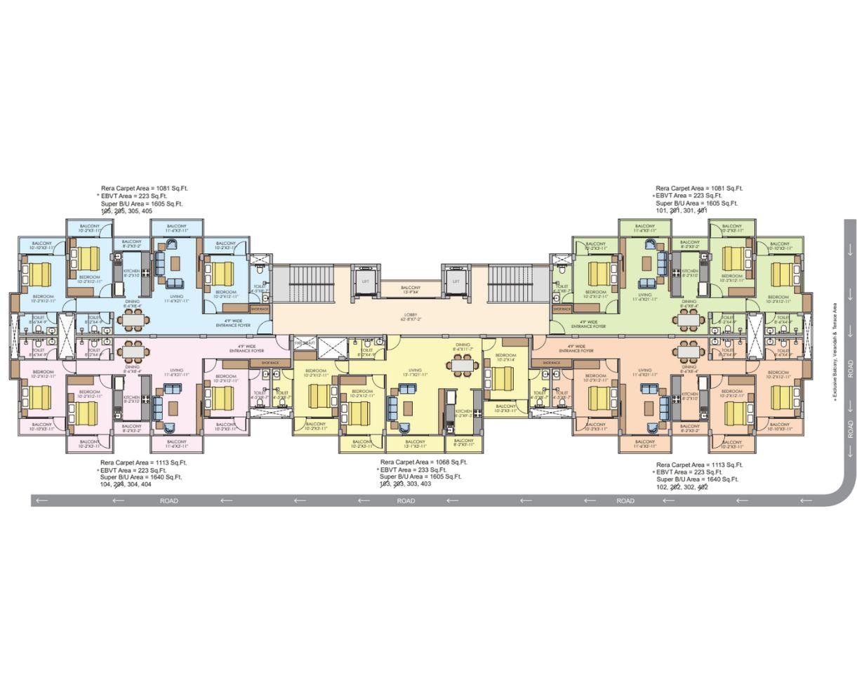 Floors : Vitrified/Ceramic floor tiles in whole flat ( Except Toilets) (Make size and quality as per discretion of the builder)